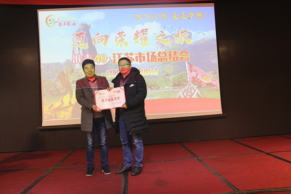 2018年江蘇(sū)省淮麥40銷售工作全麵結束。對於過去一年在江蘇省淮麥40銷售中表現突(tū)出的優秀縱隊及優異個人,國(guó)豐農業頒發了獎牌及獎金予以鼓勵!