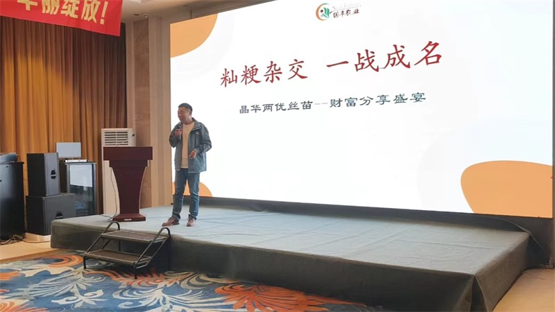 國豐(fēng)農業董事長張家法先(xiān)生作《秈粳雜交 一戰成名晶華兩優絲苗--財富分享盛宴》報告。報告闡述了(le)國豐農業‘精準營銷,精細服務’”的企業發展理念,對如何將“晶華兩優絲苗”打造成全國性大品種的運作思路進行了係統性的分享。