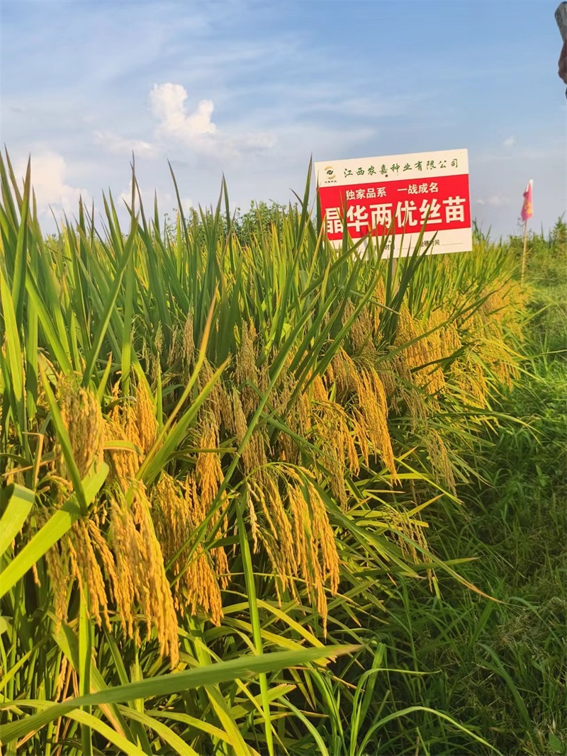 江西農嘉種業總經理廖平先生在會上表示晶華兩優絲苗在江西地區的3年(nián)試驗示範試種(zhǒng)的表現情況,種植戶對晶(jīng)華兩(liǎng)優絲(sī)苗的產量和抗性這方麵非常(cháng)的認可。針對農戶和經(jīng)銷商的反饋對晶華兩優絲(sī)苗的優(yōu)點(diǎn)做出如下總結:1、株型非常緊湊 2、抗倒性非常好 3、有效穗非常多 4、最關鍵(jiàn)的(de)是抗高溫能力非(fēi)常強。雖然前期(qī)持續高溫,但是晶華兩優絲苗的結實率普遍都在90%以上,非常的耐高溫。