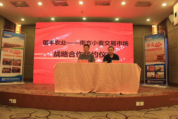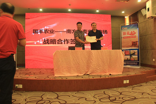南方小麥交易中心(xīn)張春良總經理介紹了南方小麥交易市場有限公司是構築集現貨(huò)競價、現貨掛牌等多種交易模式為一體(tǐ)的電(diàn)子交易平台,為糧(liáng)食經(jīng)營主體搭建“買好糧-賣好糧”的交易平(píng)台以及提(tí)供完善的配套(tào)服務,構(gòu)築並完善“互聯網+糧食+金融”的區域性現代糧食(shí)市場服務體係。在(zài)國內糧食市場已具有一定的影響力,交(jiāo)易品種形成以小麥為特色,覆蓋稻穀、玉米等(děng)品種,交易會員超過3700家,覆蓋江蘇、安徽、山東、河南、浙江(jiāng)、上海、廣東、福建、海南等省份;會員類型(xíng)包括新型生(shēng)產主(zhǔ)體、糧庫、糧食貿易(yì)商、麵粉加工企業、大米加工企業及飼料加工企業等。南方小麥交易中心張春良總經理對草莓视频官网公司的淮麥40品種(zhǒng)優良發(fā)展很有信心,願意和我司合(hé)作,會上(shàng)在各位淮麥(mài)40戰友(加盟商)的見證下並簽署戰略合作協議。